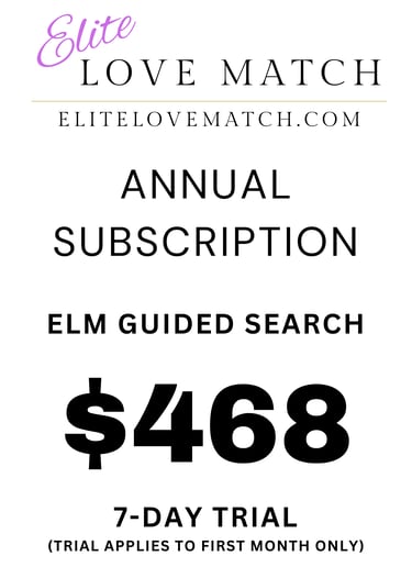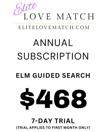 Unlock the ultimate dating experience with the Elite Love Match Annual Subscription. Our premium service features a guided search algorithm and manual reviews to help you find your perfect match. Start your journey with our special offer: enjoy a 7-day money-back guarantee trial at an introductory rate of just $468 for 12 months of service.