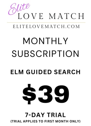Unlock the ultimate dating experience with the Elite Love Match Monthly Subscription. Our premium service features a guided search algorithm and manual reviews to help you find your perfect match. Start your journey with our special offer: enjoy a 7-day money-back guarantee trial at an introductory rate of just $39, and auto-renews monthly at $39.