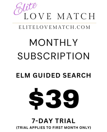 Unlock the ultimate dating experience with the Elite Love Match Monthly Subscription. Our premium service features a guided search algorithm and manual reviews to help you find your perfect match. Start your journey with our special offer: enjoy a 7-day money-back guarantee trial at an introductory rate of just $39, and auto-renews monthly at $39.